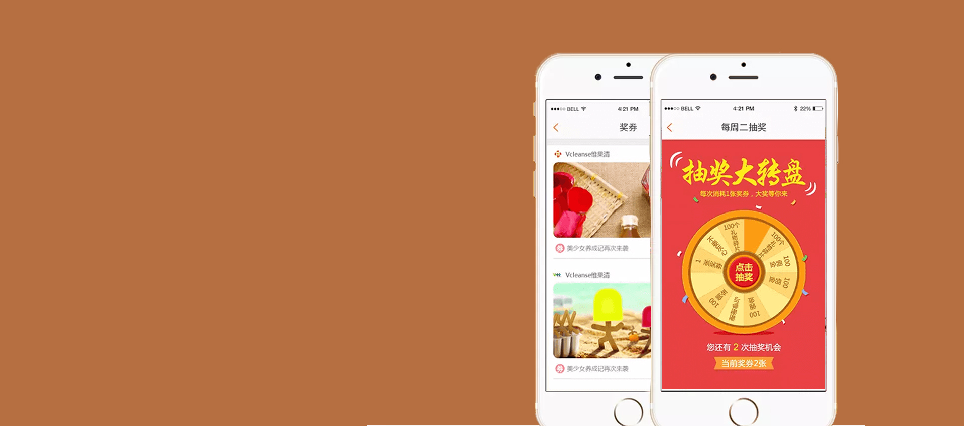 用户通过分享获取礼物,或参加抽奖获取礼物,通过线下快递邮寄给用户 通过签到随机获得奖券。